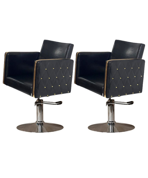Парикмахерский комплект кресел "Голдиум Блэк Д" - Мягкий элемент этого парикмахерского кресла «Голдиум Black» наполнены практичным эластичным поролоном и обтянуты высококачественной искусственной кожей. Вы не потратите на чистку кресла много времени, потому что они не нуждаются в специальной обработке. Строгость линий и массивная оригинальная форма прекрасно сочетается с высокой степенью удобства, которую получит клиент благодаря материалам, использованным при производстве этой модели.