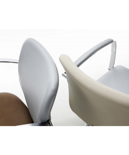 Кресло для клиента, выполнено из высококачественного поролона, каркас обтянут искусственной кожей, алюминиевые подлокотники полностью из металла или с декоративными накладками из кожезама. Комплектуется стационаром, гидроподъемником с основанием на пятилучье.