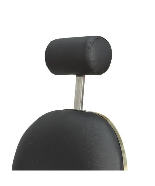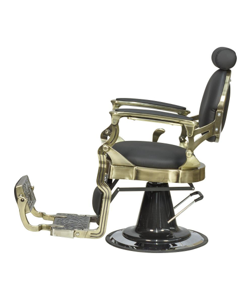 Кресло мужское барбер "Ричард" полированный каркас медного цвета - удобное сидение оснащено широкими подлокотниками для комфорта посетителей. Для поддержания шеи и головы клиента в конструкции предусмотрен мягкий подголовник. Практичная подножка не допустит усталости ног клиентов. Металлическая круглая основа с хромированным покрытием отличается прочностью и устойчивостью. Каркас изготовлен из качественной стали и многослойной фанеры. В качестве наполнителя использован эластичный поролон. Обивка выполнена из экокожи.  Материал легко очищается от загрязнений, не боится влияния дезинфицирующих и моющих средств. Благодаря своей структуре экокожа не протирается и долго сохраняет красивый внешний вид. В дизайне кресла присутствует много металлических  деталей и фурнитуры под медь или шагрень. Подлокотники и подставка на подножках обиты экокожей, что придает креслу большей солидности, а клиенту максимального комфорта. Гидравлический подъемник, используемый для подъема кресла, способен выдержать высокие нагрузки. Для регулировки угла наклона спинки и подножки используется надежный пневматический механизм. Подъем подголовника осуществляется с помощью механики.