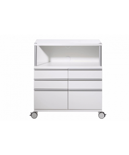 - 6 выдвижных ящиков шириной 40 см (высота 4 верхних ящиков 12 см, 2 нижних 24 см), с возможностью разместить в них подходящие разделительные боксы;