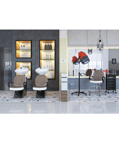 Парикмахерская мойка "ЕЛЕНА" с креслом "СОЛО Модерн" - это удобная и элегантная модель, которая отлично впишется в интерьер Вашего салона. Стильный дизайн, продуманная конструкция, качественные материалы – все это гармонично сочетается в данной модели. В базовую комплектацию товара включена профессиональная керамическая раковина среднего размера. По желанию Вы можете внести изменения в конфигурацию и выбрать другую раковину (черную среднюю, белую или черную глубокую).
