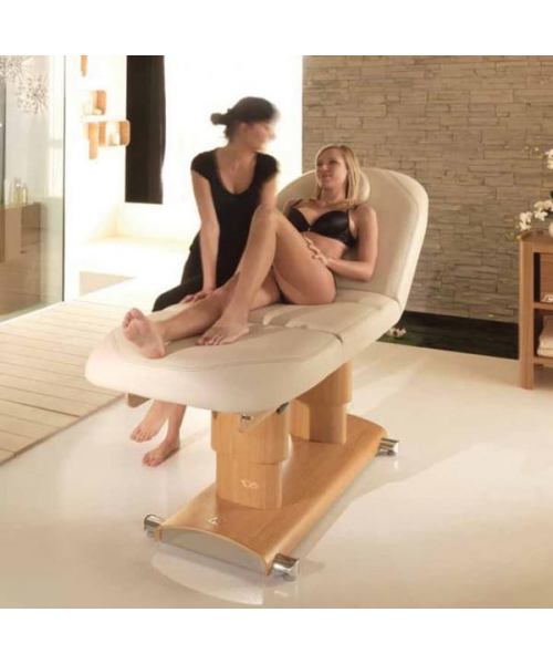 Многофункциональная кушетка "GEMYA" для массажа и SPA процедур для лица и тела, способна обеспечить максимальный комфорт. Кушетка оснащена тремя электромоторами, с помощью которых регулируются высота, наклон спинки и сидения (ножной части), регулировки осуществляются за счет ручного пульта управления. Комплектуется отверстием для лица и подушечкой. Основание кушетки изготовлено из натурального дерева.
